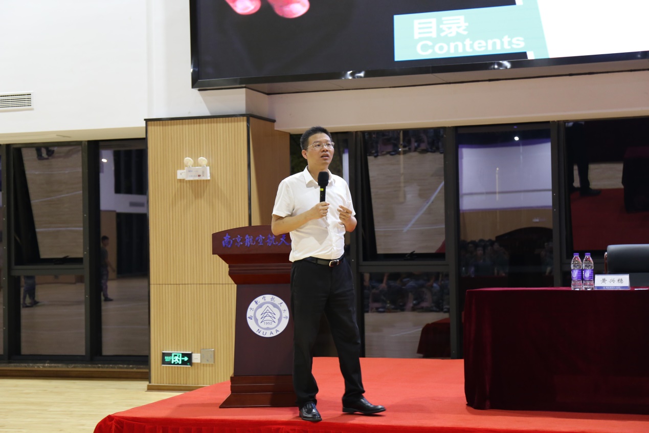 9月10日晚,民航/飞行学院在天目湖校区风雨操场举办了“凤回巢”校友职场说讲座,本次讲座邀请到的分享嘉宾为交通运输(航空运输管理)专业1993级校友、现任春秋航空股份有限公司副总裁黄兴稳,民航/飞行学院常务副院长高健、2019级新生辅导员和近1000位同学参加了本次讲座,讲座由学院党委副书记贡海俊主持。