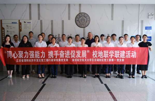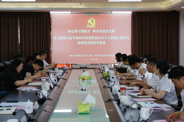 6月1日上午,我校天目湖校区党工委第一党支部与江苏省溧阳经济开发区党工委行政审批局党支部开展“同心聚力强能力 携手奋进促发展”学习贯彻习近平新时代中国特色社会主义思想主题教育校地党支部联学联建活动,南航天目湖校区管委会/规建办主任江波、溧阳市上兴镇人民政府副镇长潘超参加活动。活动由天目湖校区党工委第一党支部书记寇晓洁主持。