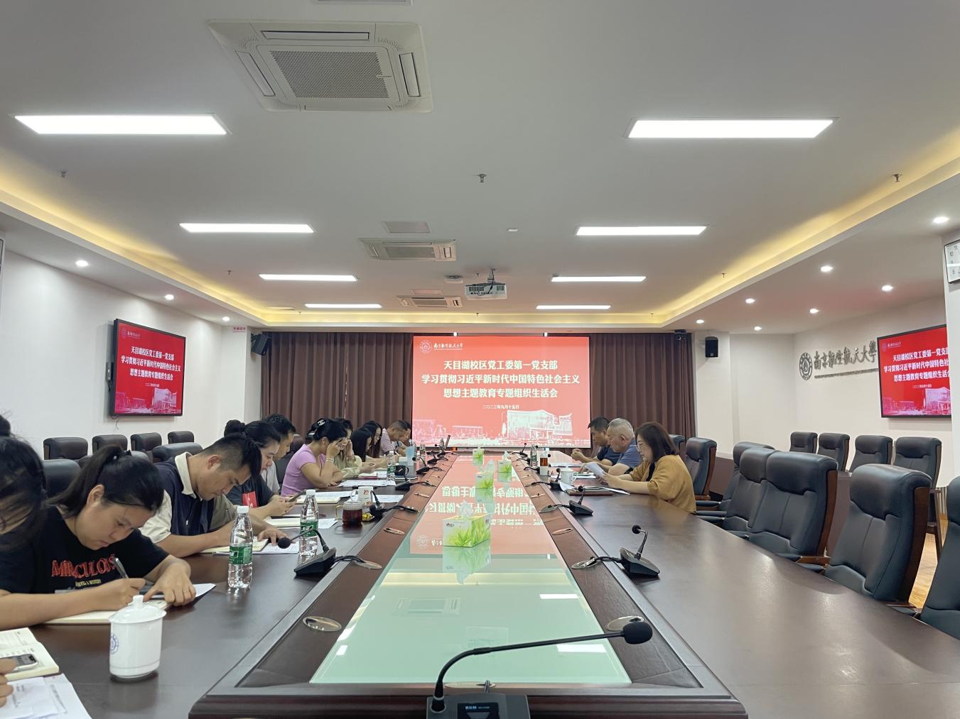 9月15日下午,天目湖校区党工委第一党支部召开学习贯彻习近平新时代中国特色社会主义思想主题教育专题组织生活会,校区党工委委员潘顺荣作为督导员参会。会议由支部书记寇晓洁主持。