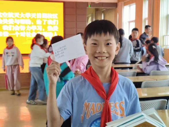 9月底,爱心包裹顺利抵达连云港市门河中心小学。据校方反馈,孩子们收到包裹后兴奋不已,纷纷围坐在一起翻看照片,读着写在明信片上的寄语,拿到崭新书籍的孩子立刻翻开阅读,眼中闪烁着对知识的渴望。同时校方也寄来了感谢信,感谢我们对于乡村振兴、人才兴乡做出的贡献,让更多的孩子在关爱中感受到知识滋养,坚定理想目标并为之奋斗,成就多样人生。