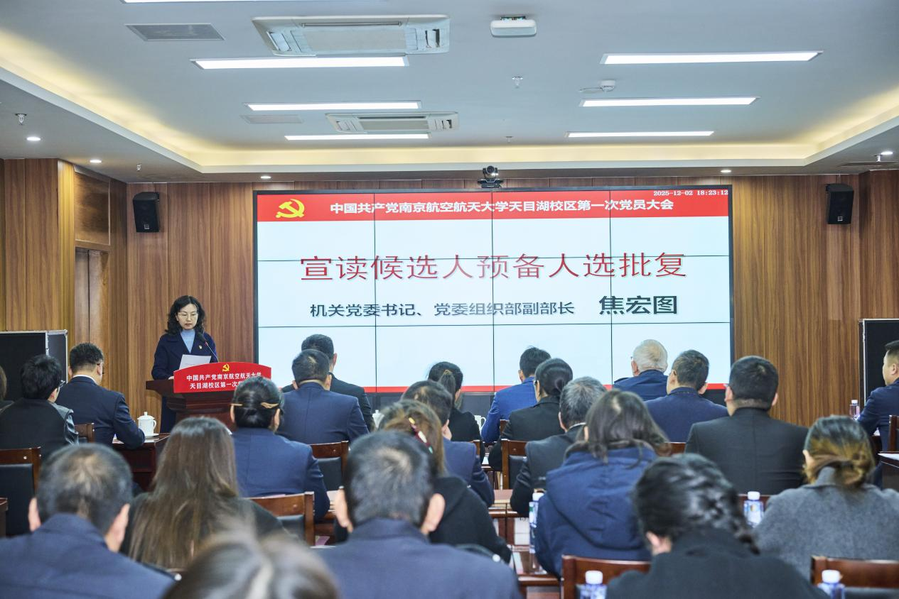 在学校深入学习贯彻党的二十届四中全会精神,科学谋划“十五五”发展蓝图的关键时期,12月2日,中共南京航空航天大学天目湖校区第一次党员大会隆重召开。校党委副书记刘宇雷,机关党委书记、党委组织部副部长焦宏图出席会议,天目湖校区党委全体党员参加会议。会议由天目湖校区党委书记、管委会主任缪长宗同志主持。