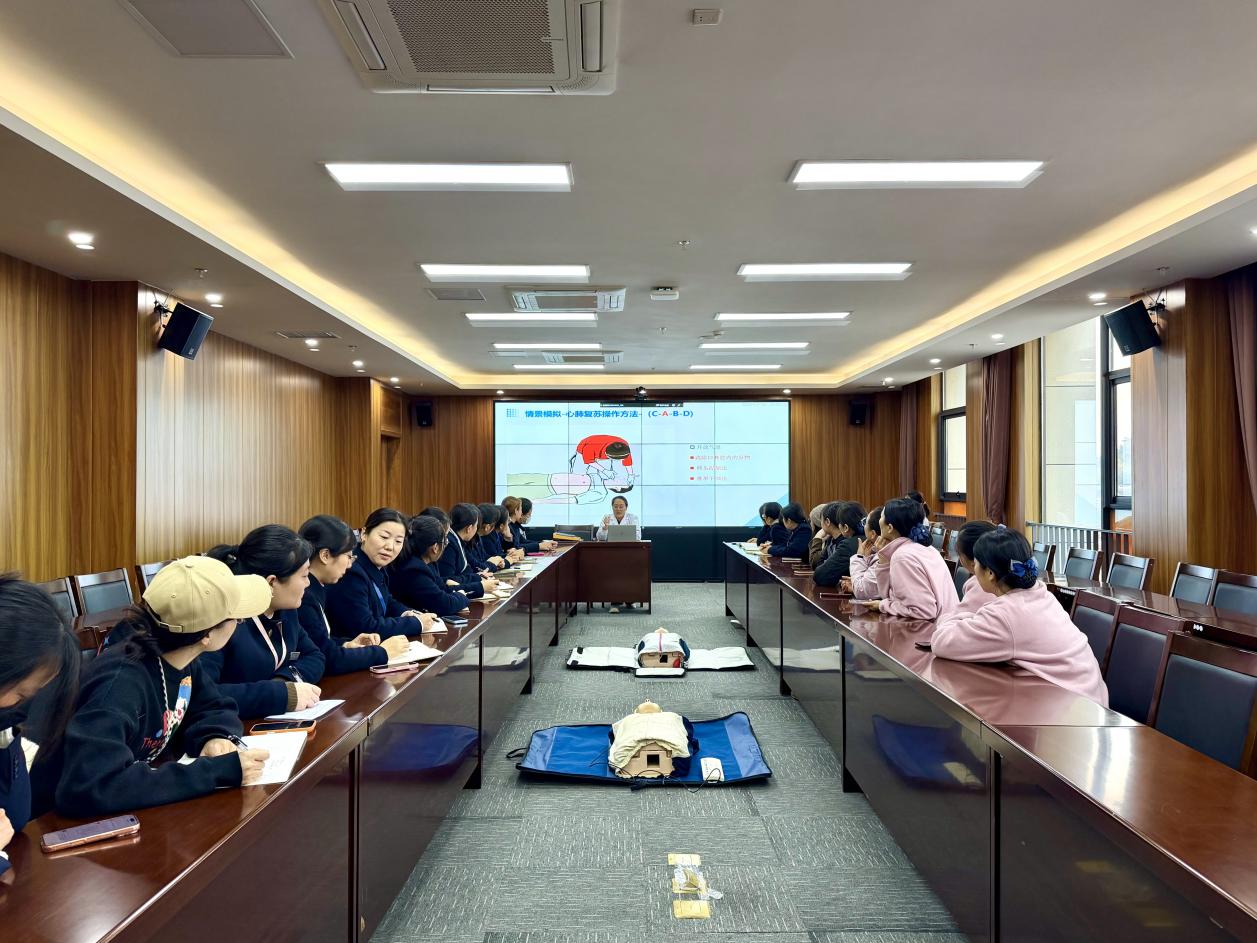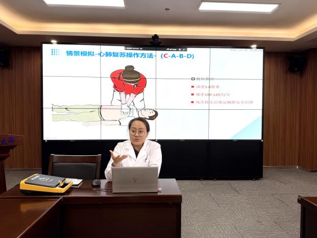 本次培训特邀校医院医护人员现场授课,系统讲解心肺复苏(CPR)、自动体外除颤仪(AED)操作等核心急救知识。培训以真实案例与权威数据为支撑,直观阐释了急救技能掌握的必要性与紧迫性,重点拆解“黄金4分钟”急救原则的核心要义及心肺复苏的标准操作流程。医生强调,规范的操作流程与标准动作是急救成功的基础,而沉着冷静的心理素质、高效协同的团队协作能力,更是确保急救工作顺利开展的关键要素。