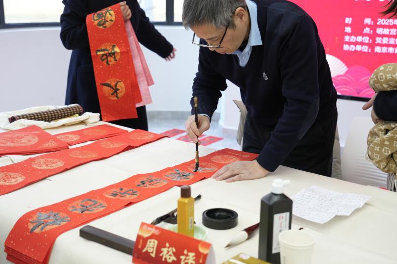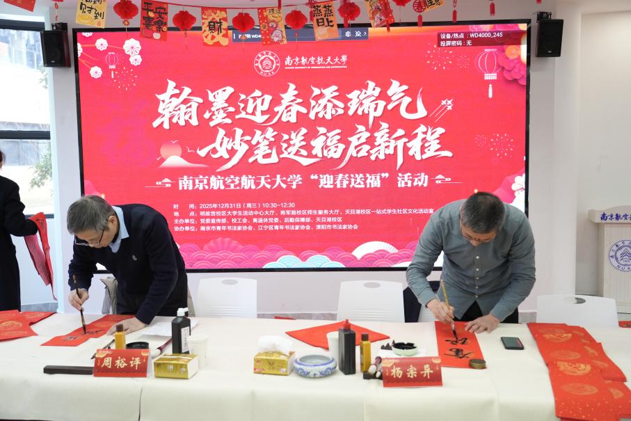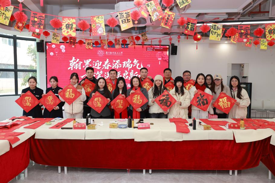 巳蛇辞旧,瑞气盈门;福满新岁,骏马迎春。12月31日,由党委宣传部指导,校工会、离退休党委、后勤保障部联合天目湖校区党委举承办的“翰墨迎春添瑞气,妙笔送福启新程”迎春送福活动在天目湖校区“一站式”学生社区B8栋119文化活动室举行。校区近百千名师生参加了活动。