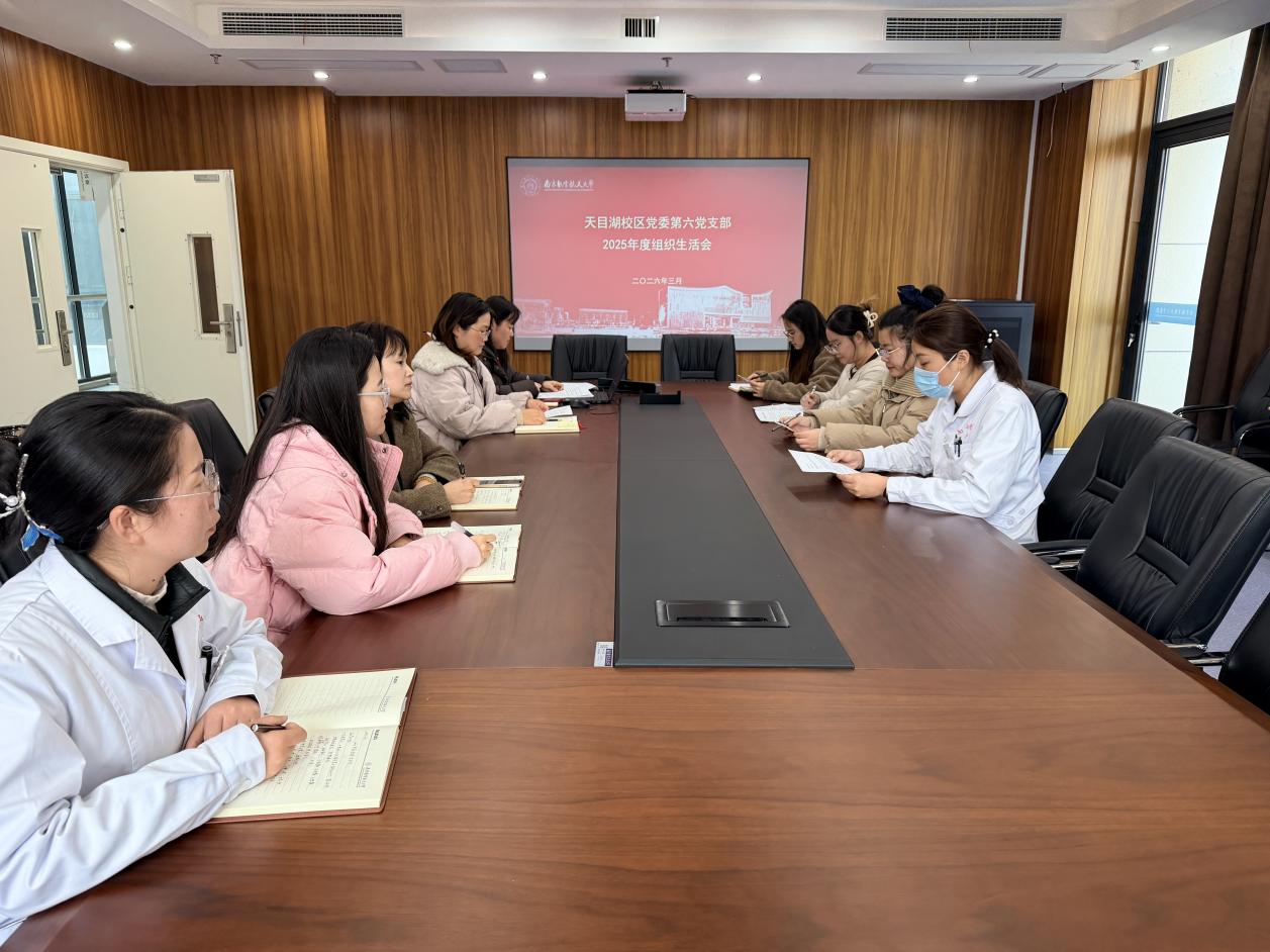 3月9日下午,天目湖校区党委第六党支部召开2025年度组织生活会,开展批评与自我批评及民主评议党员工作,支部书记陈超英主持会议。