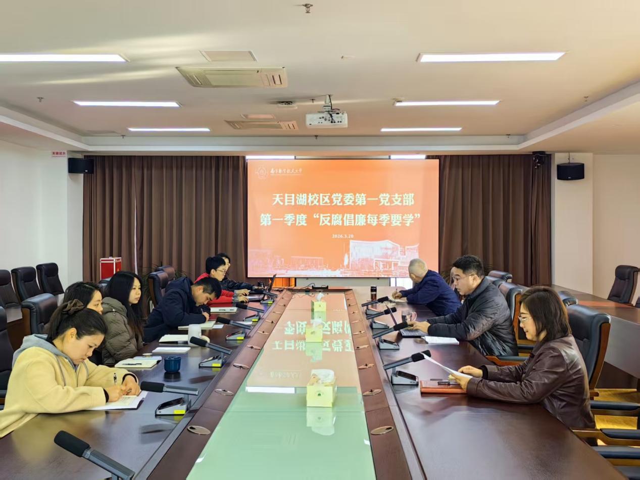 为深化全面从严治党,强化支部党员的纪律与规矩意识,3月20日,天目湖校区党委第一党支部开展2026年第一季度“反腐倡廉每季要学”,支部书记寇晓洁主持会议。